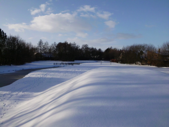 Die direkt anliegende Parkanlage bietet vielfältige Möglichkeiten der kurzweiligen Erholung. Ob Spaziergänge, Joggen, am Wasser mit oder ohne Angel entspannen, den nahen Spielplatz erkunden, im Winter mit dem Schlitten vom Rodelberg oder auf dem Eis Schlittschuhlaufen. Zudem gelangt man durch den Park auf reizvollen Wegen zu Fuß oder mit dem Fahrrad schnell in die Stadt. (Bilder: Herbst 2013 / "Winter" 2014)