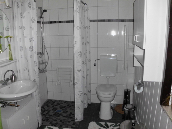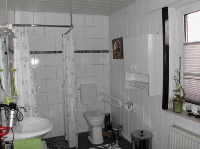 Das behindertenfreundliche Bad / WC ist hell und geräumig.